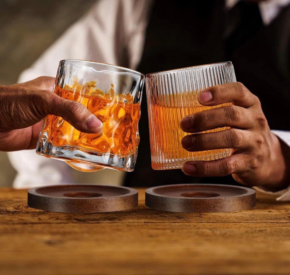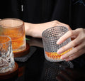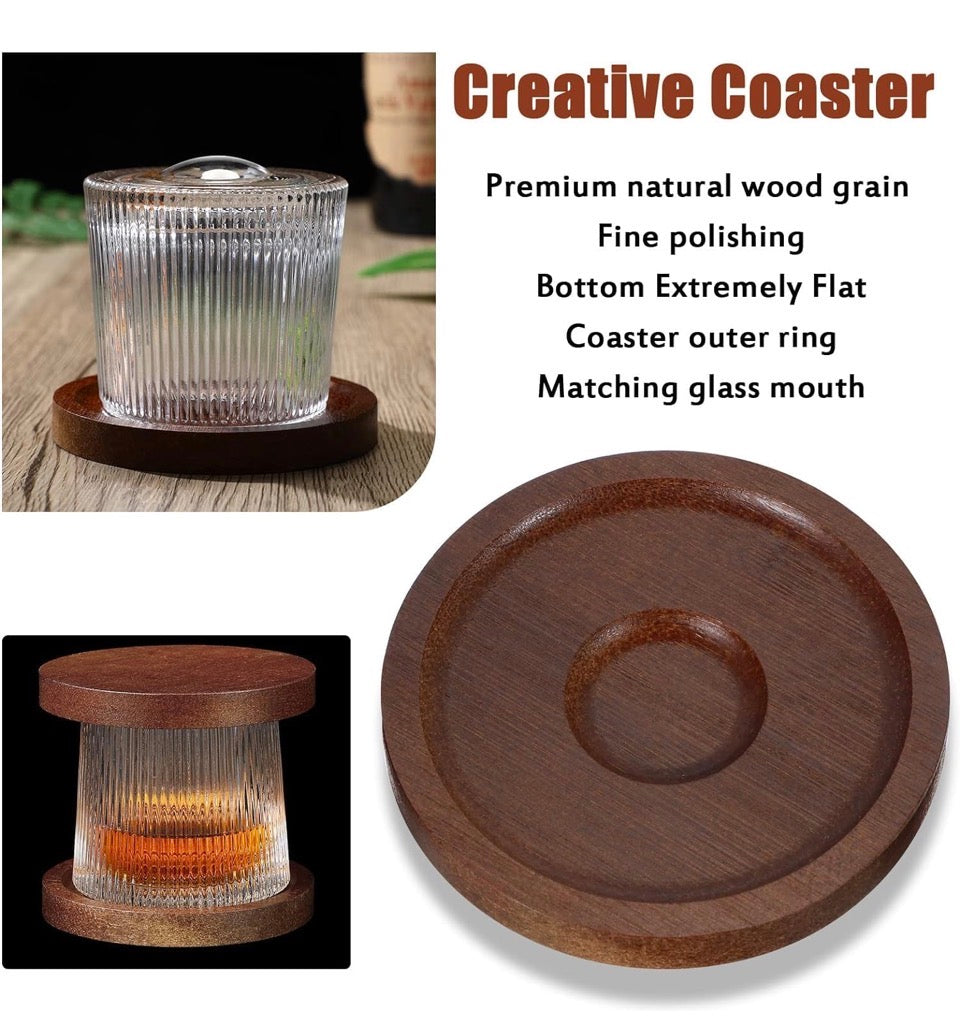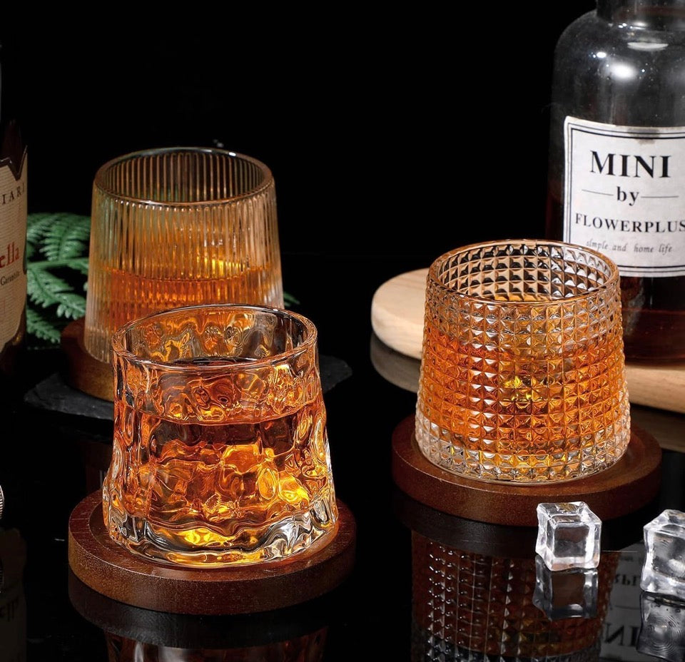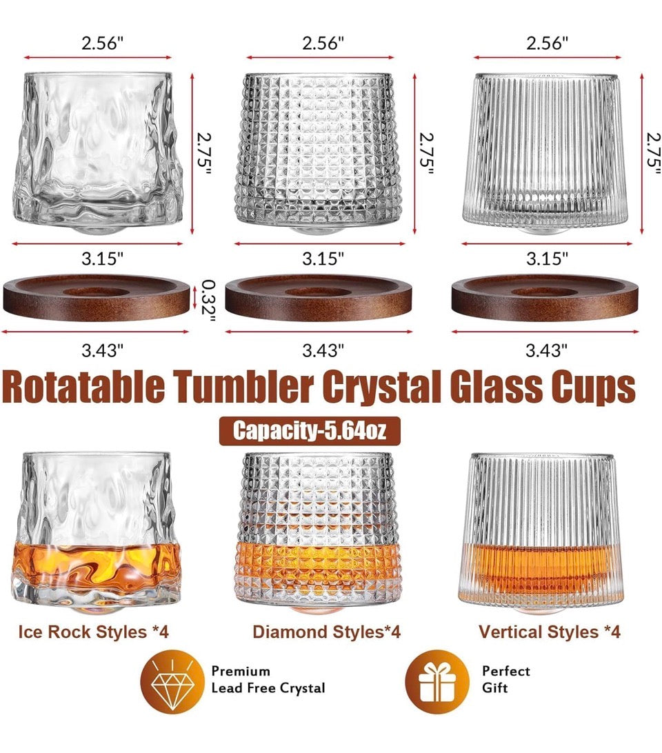 1 pcs Whiskey Glasses Set Rotatable Old Fashioned Glasses with Creative Walnut Coasters, Whiskey Gifts for Men Husband Father's Day, Bourbon Glass Cups for Drinking Cocktails (Diamond style)