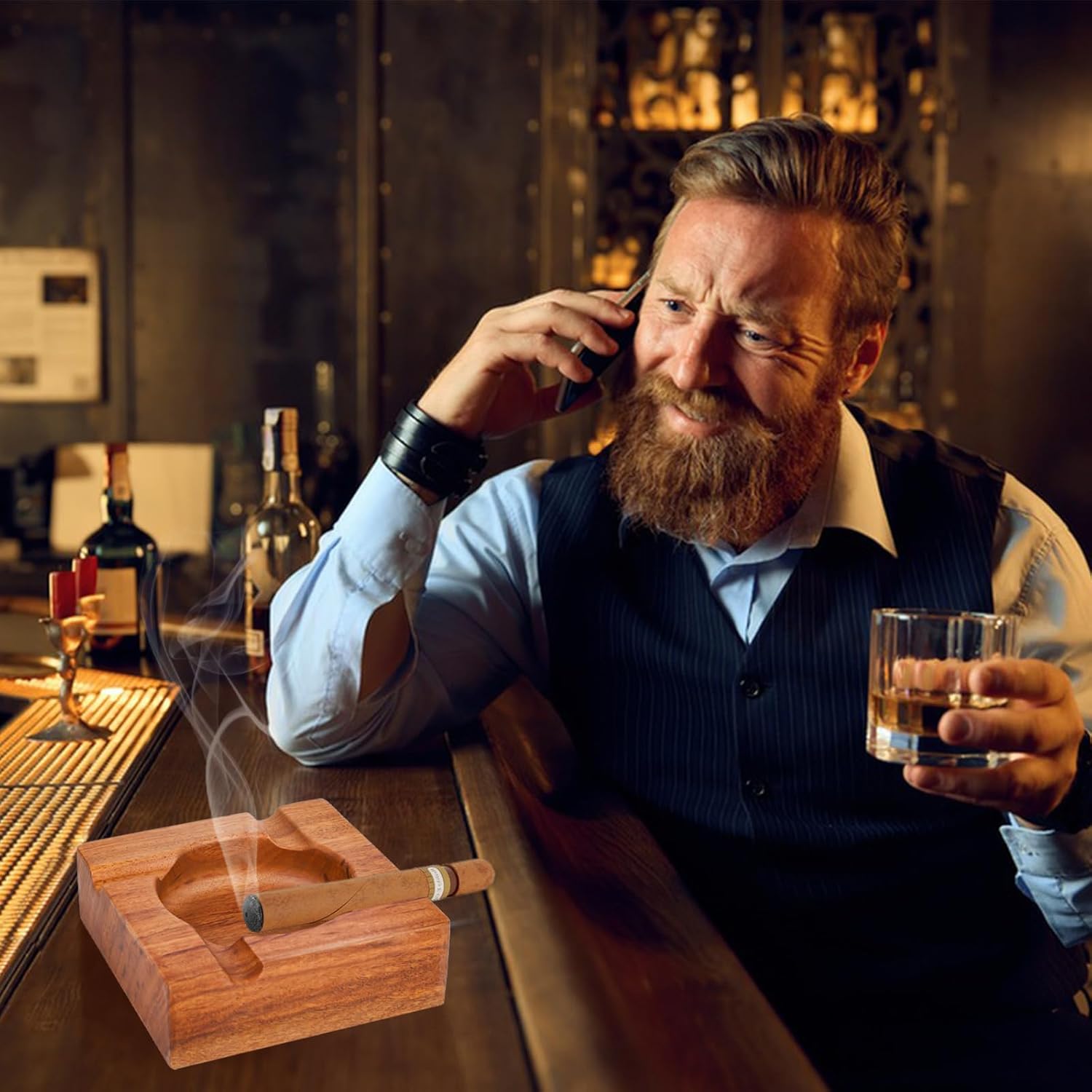 Versatile Usage and Stylish Addition: Not only suitable for outdoor home patios and bars, but our wooden cigar ashtray also adds a touch of sophistication to any indoor space. Its versatile usage allows you to enjoy your cigars in style, whether it's during a relaxing evening at home or a social gathering with friends