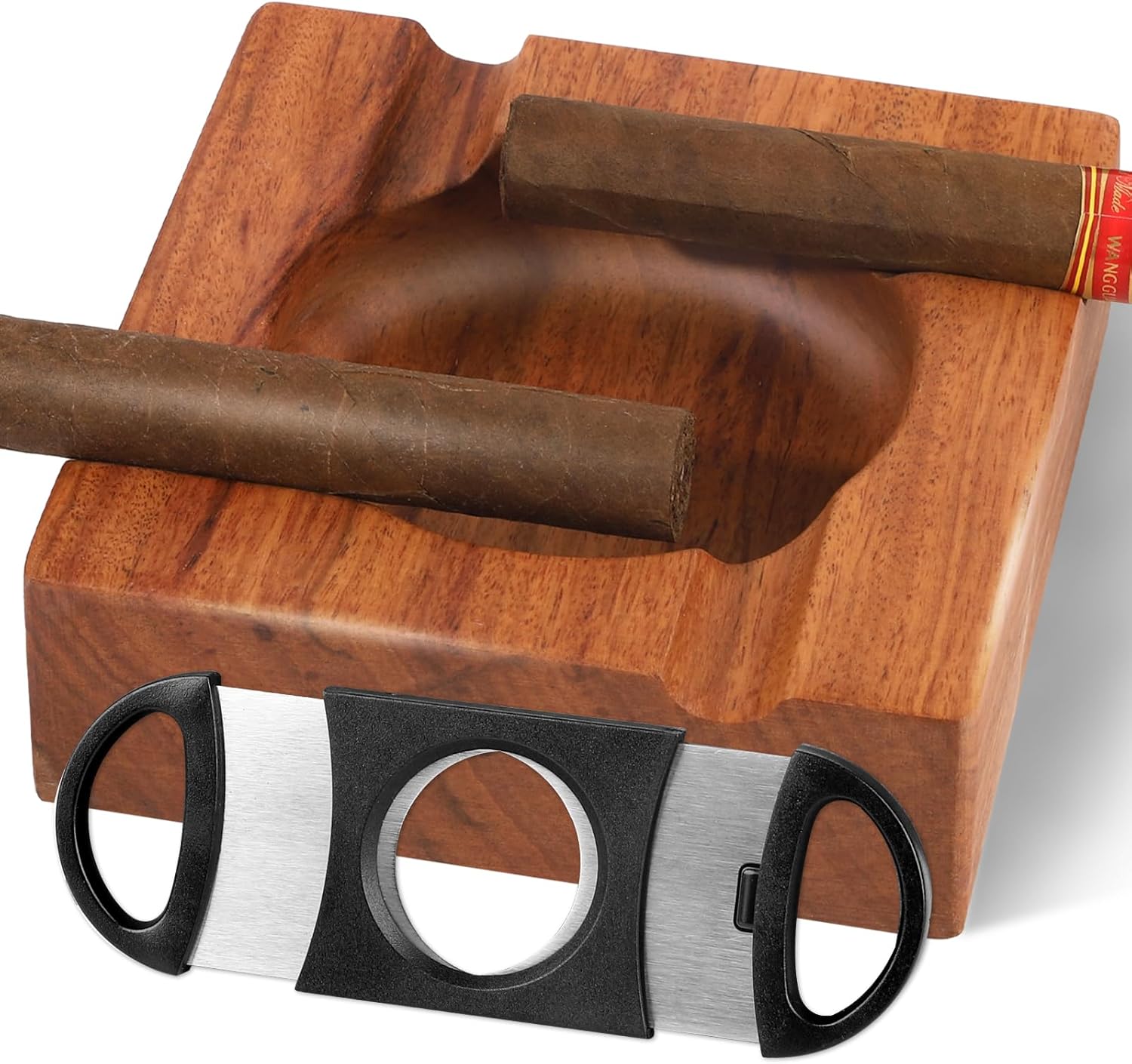 Perfect Gift: This wood cigar ashtray with a cigar cutter makes for a perfect gift for any cigar enthusiast. Give the gift of elegance and sophistication to the cigar lover in your life
