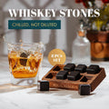 - Chill Without Dilution – Enjoy every nuanced sip with our 100% natural black granite whiskey cubes. These smooth and durable stones chill your drink without watering it down, preserving the pure, rich flavors of your spirits.