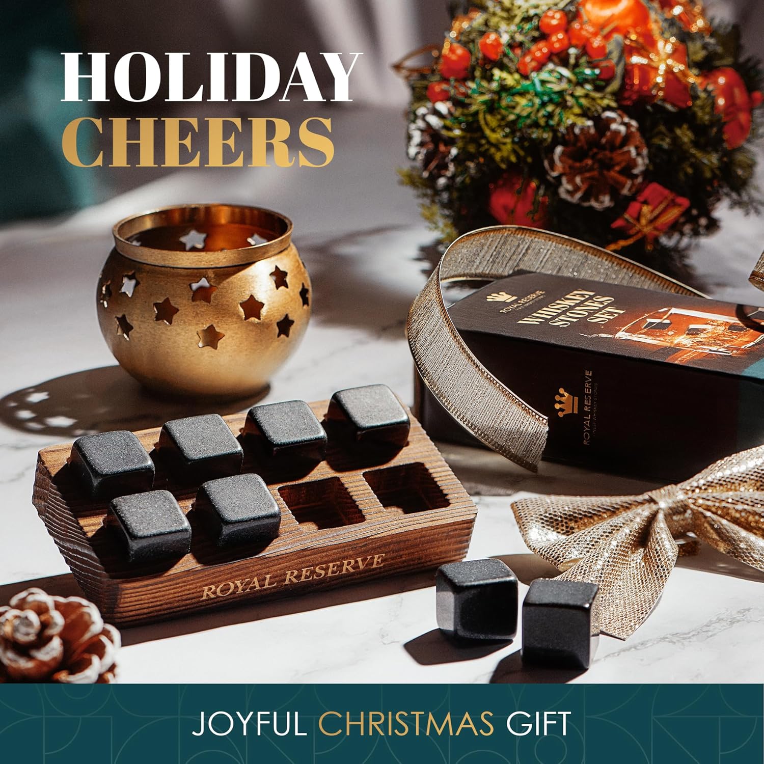 Whiskey Stones Gift Set by Royal Reserve – Artisan Crafted Reusable Chilling Rocks for Scotch – Bourbon Gifts for Men Husband Dad Boyfriend Guy
