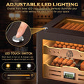 [Premium Cigar Humidor Cabinet]: Expertly crafted from spanish cedar wood, our cigar humidor leverages the wood's natural hygroscopic properties to provide optimal moisture regulation and breathability - creating the perfect storage environment for your prized cigar collection. The dual-sided tempered glass construction with magnetic-sealed door maintains ideal humidity while offering clear viewing of your cigars from every angle